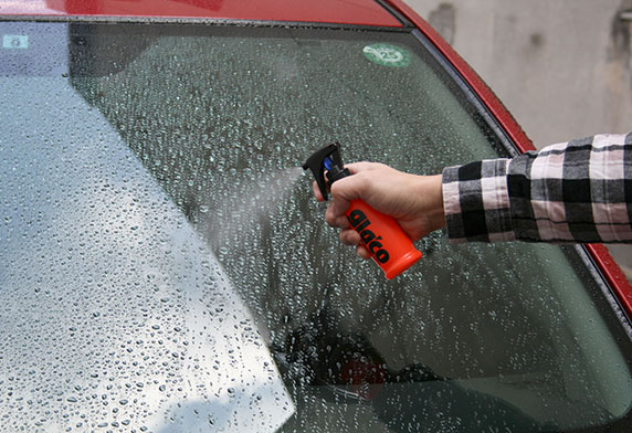 與現有商品相比較大大簡化了操作,但依然保留了超強撥水的新型””雨敵””。無需塗抹,乾燥,只需噴灑在擋風玻璃之上,即可發揮不亞於塗膜型的功效。 洗車後打濕的玻璃使用也OK。玻璃上有水滴殘留也可以使用。 可在10台中型車的擋風玻璃上使用。