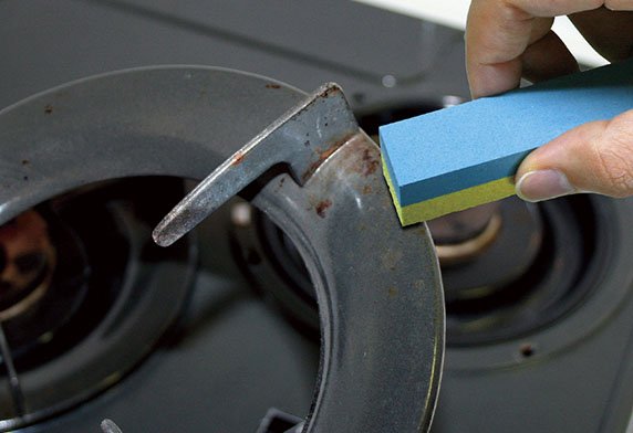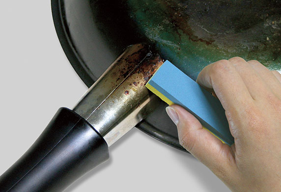 本品為擁有堅硬面與柔軟面的雙層構造清潔劑,採用了超強力研磨劑配方。像使用橡皮擦般的擦拭感覺,根據廚房內的不同部位及污垢程度,將燒焦後的殘留印跡‧氧化黑斑‧鐵銹簡單徹底的去除乾淨,達到一般洗滌產品所不可能實現的清潔效果。並且除用於清潔廚房以外,浴室‧洗手間,下水管道,園藝用品,工具,腳踏車等金屬部位等都可以使用本品進行清潔。