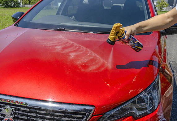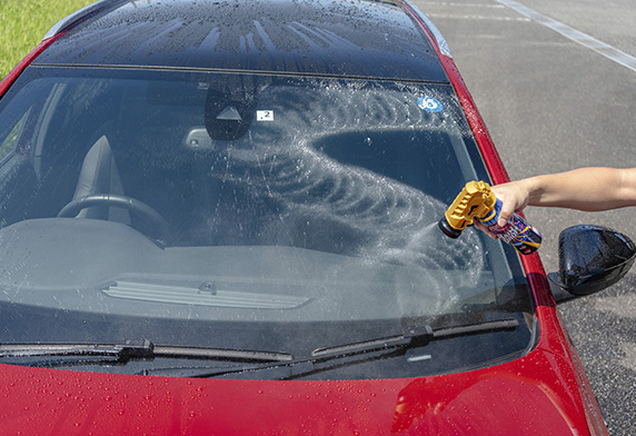 「車身及玻璃用光艷撥水鍍膜劑」RAINDROP系列再次進化。 透過新開發的「龍捲風漩渦噴頭」大幅提升施工效率,新開發「G-RAS鍍膜」不僅增加撥水鍍膜的持久性,更添加光艷功能。車身鈑金約5個月※,玻璃約3個月※長時間維持強力光艷撥水性能。鍍膜液使用完畢後,噴頭又能重複使用,實現環保及高性價比。 ※根據本公司測試。