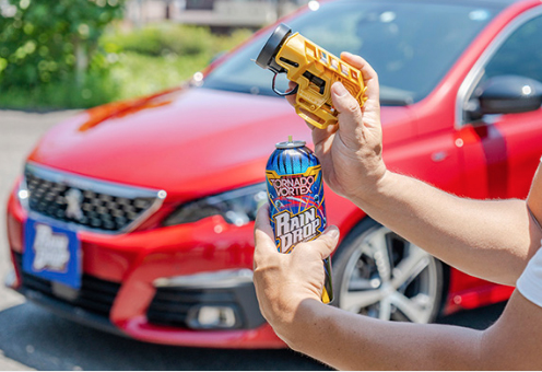- 請將用完的「龍捲風鍍膜劑」噴頭確定鎖至「OFF」的位置,在黑扣板機下方的黃色接合處,用手指往上推,即可取下。取下「龍捲風鍍膜劑替換裝」的蓋子後,將噴頭蓋上去直到發出咔聲即完成。
